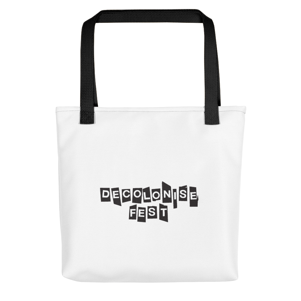 A high quality and heavy-duty tote bag featuring the Decolonise logo.